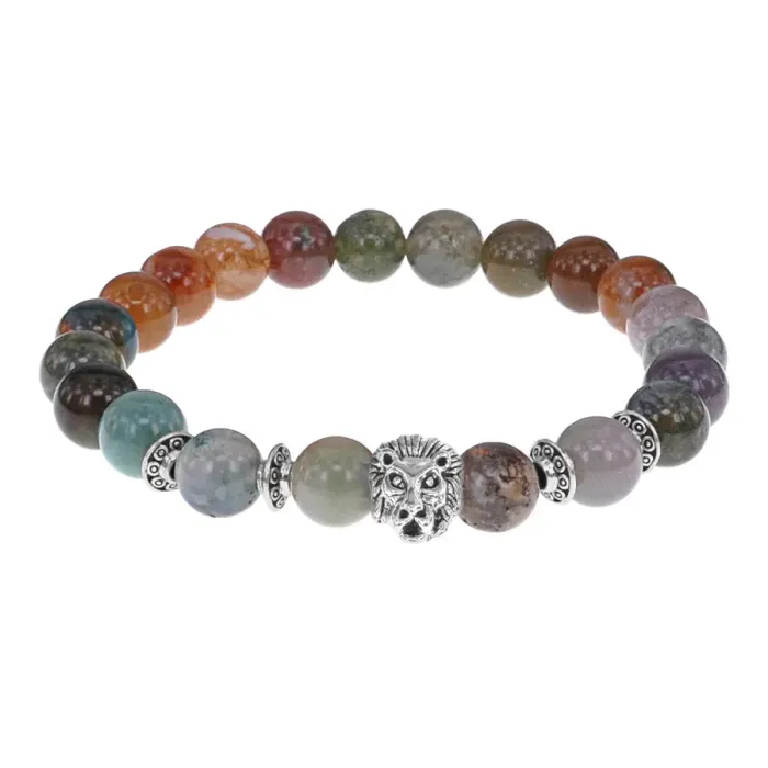 Браслет-амулет Лев с нат.камнем Яшма 8мм BSH-09-25S