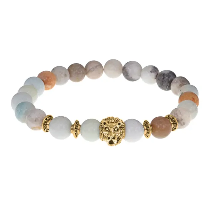Браслет-амулет Лев с нат.камнем Амазонит 8мм BSH-09-26G