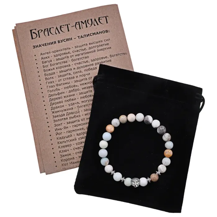 Браслет-амулет с символом Льва и бусинами из натурального амазонита.
