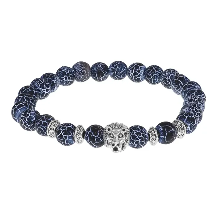 Браслет-амулет Лев с нат. камнем синий Африканский агат 8мм BSH-09-27S