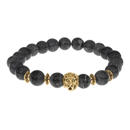 Браслет-амулет Лев с нат. камнем Змеевик 8мм BSH-09-29G