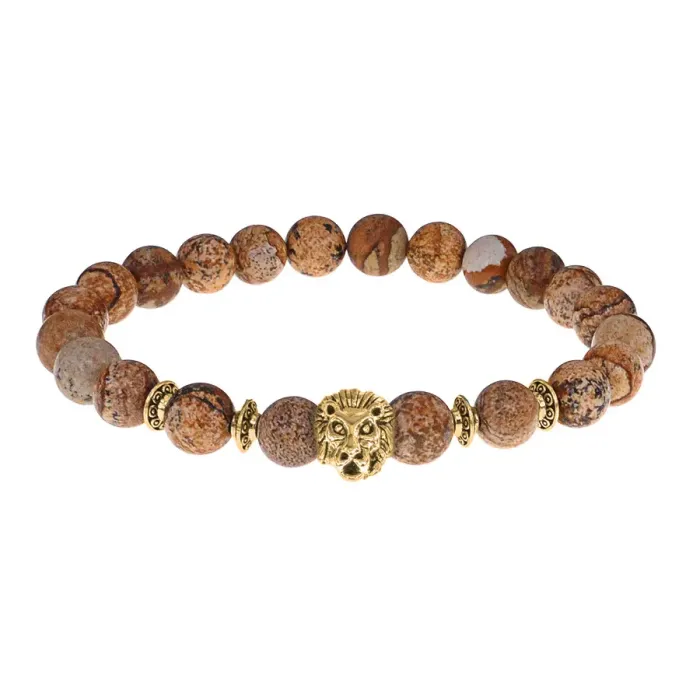 Браслет-амулет Лев с нат. камнем Песочная яшма 8мм BSH-09-30G