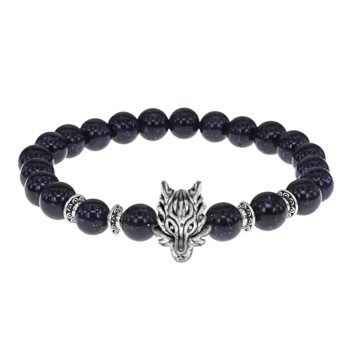 Браслет-амулет Волк с синт. камнем Синий авантюрин 8 мм BSH-10-02S