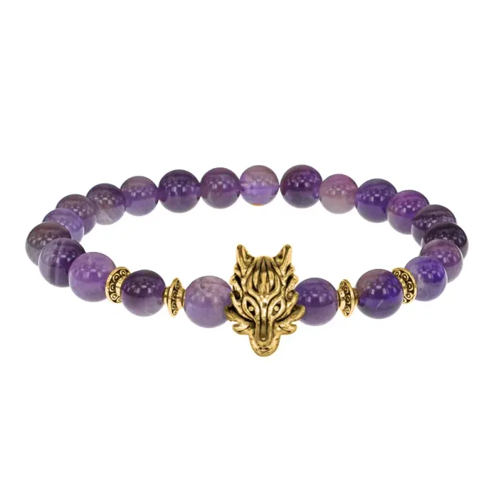 Браслет-амулет Волк с нат. камнем Аметист 8мм BSH-10-03G