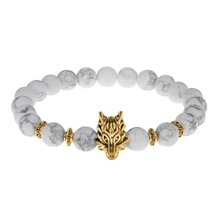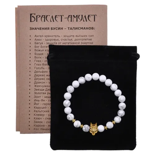 Браслет-амулет Волк с нат. камнем Кахолонг 8мм BSH-10-07G