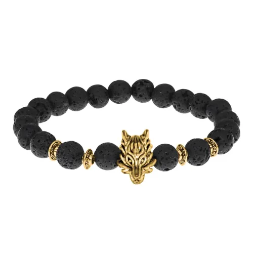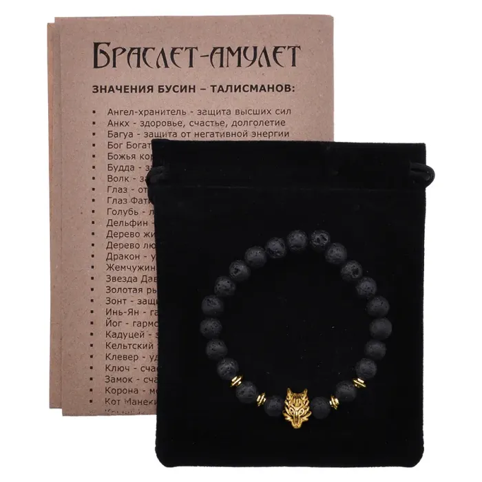 Браслет-амулет Волк с нат. камнем Лава 8мм BSH-10-09G