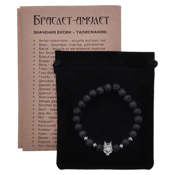 Браслет-амулет Волк с нат. камнем Лава 8мм BSH-10-09S