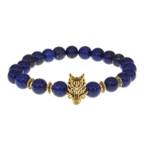 Браслет-амулет Волк с нат. камнем Лазурит 8 мм BSH-10-10G