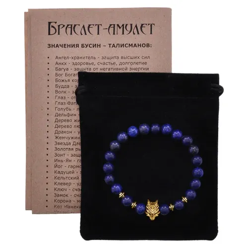 Стрейч-браслет с амулетом в виде волка и натуральным камнем лазурит.