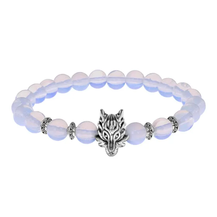 Браслет-амулет Волк с синт. камнем Лунный камень 8мм BSH-10-11S