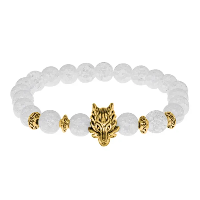 Браслет-амулет Волк с синт. камнем Сахарный кварц 8мм BSH-10-16G