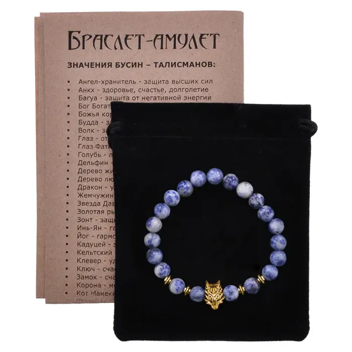 Браслет-амулет Волк с нат. камнем Содалит 8мм BSH-10-18G