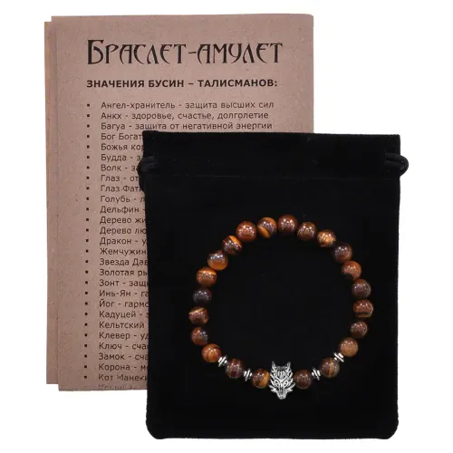 Браслет-амулет Волк с нат. камнем Тигровый глаз 8мм BSH-10-19S