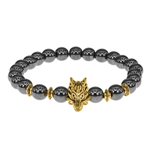 Браслет-амулет Волк с синт. камнем Гематит (не магнит.) 8мм BSH-10-28G