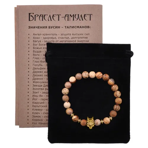 Браслет-амулет Волк с нат. камнем Песочная яшма 8мм BSH-10-30G