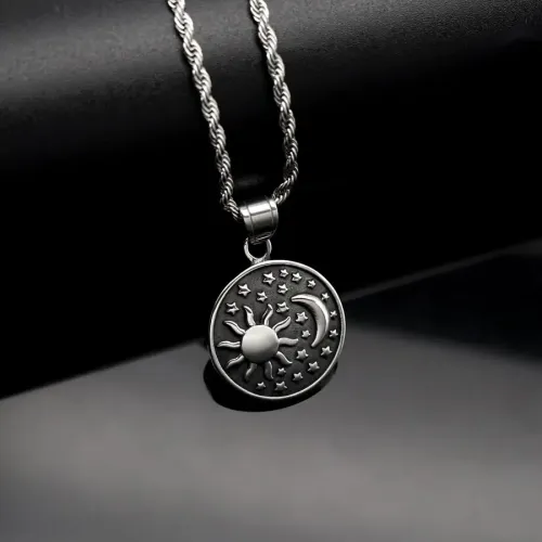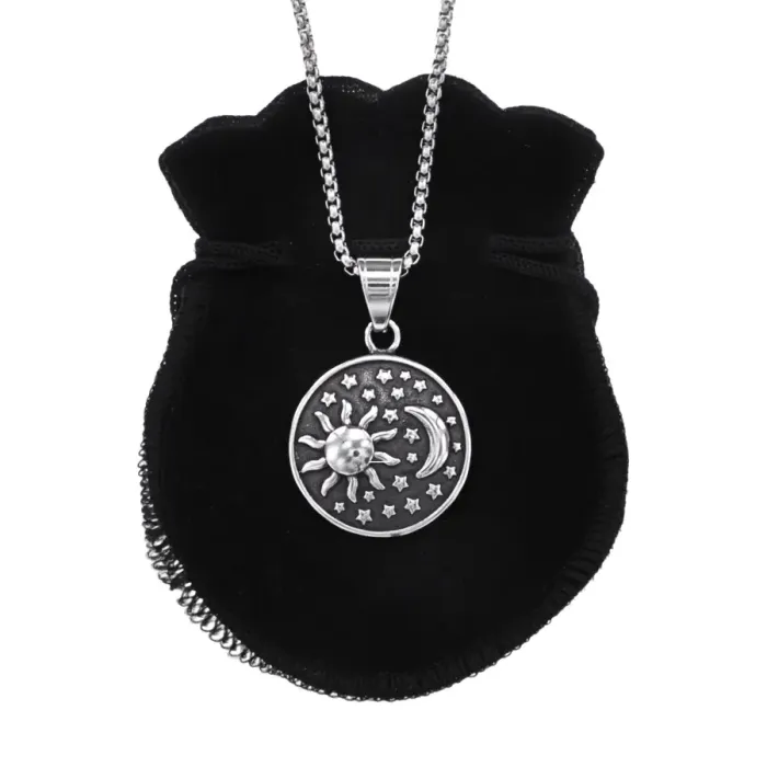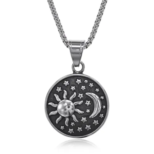 Амулет Солнце и полумесяц из нержавеющей стали на цепочке.