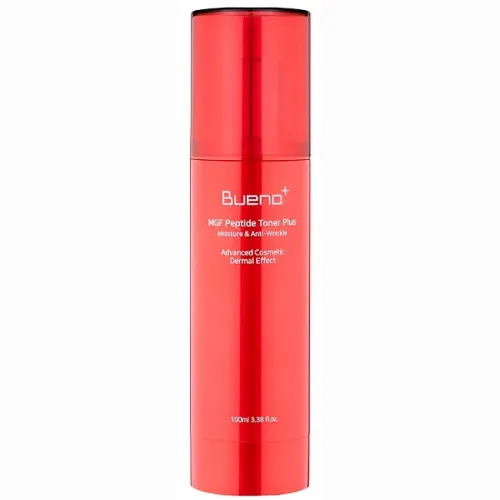 Антивозрастной тонер Bueno MGF Peptide Toner Plus с пептидами — это эффективное средство для ухода за кожей, специально разработанное для борьбы с признаками старения. Тонер помогает выравнивать тон и рельеф кожи, улучшает ее текстуру и разглаживает мелкие мимические морщинки. Благодаря активным компонентам в составе, он уменьшает глубину кожных заломов и обеспечивает комплексный уход.