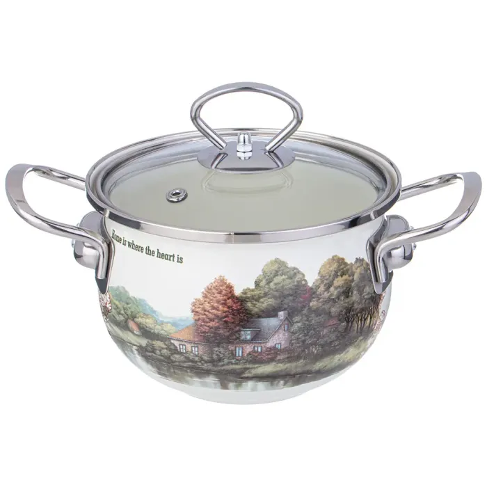 Кастрюля подходит для варки и тушения на различных типах плит. Стеклянная крышка позволяет наблюдать за готовкой. Эмалированная поверхность сочетается с другой посудой в коллекции Family house и подходит для кухонь в классическом или современном стиле.