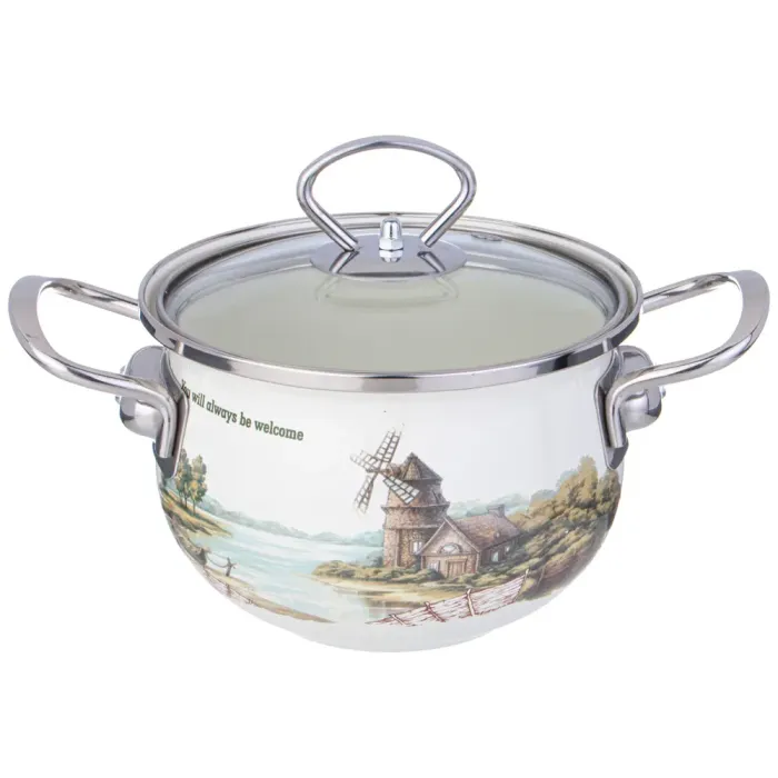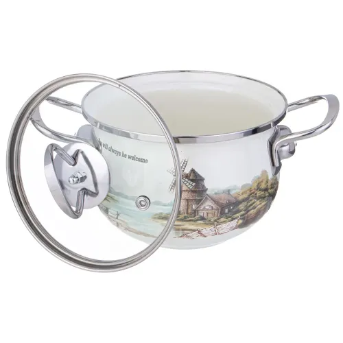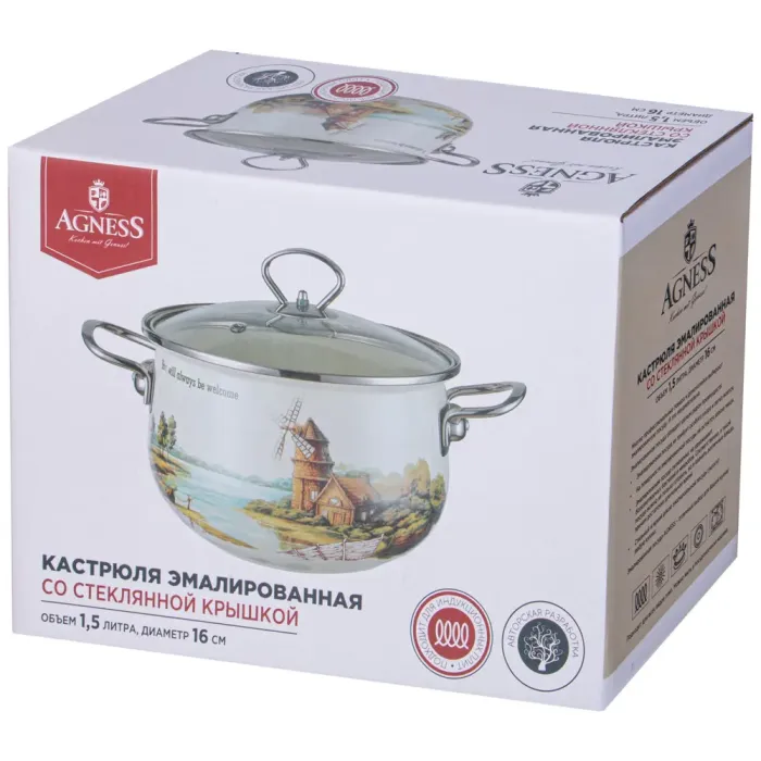 Кастрюля эмалированная со стеклянной крышкой серия Family house 1,5 л диаметр 16 см – Agness