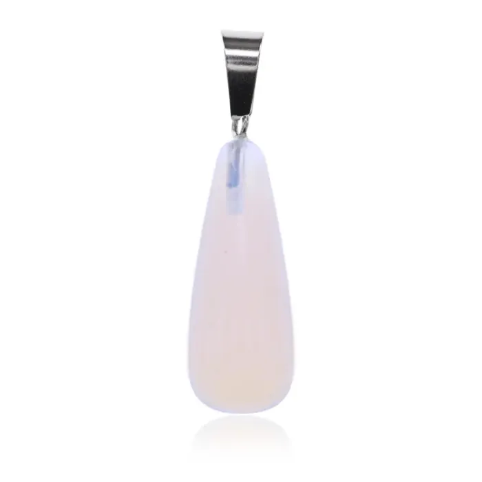 Кулон в форме капли из синтетического лунного камня с металлической основой.