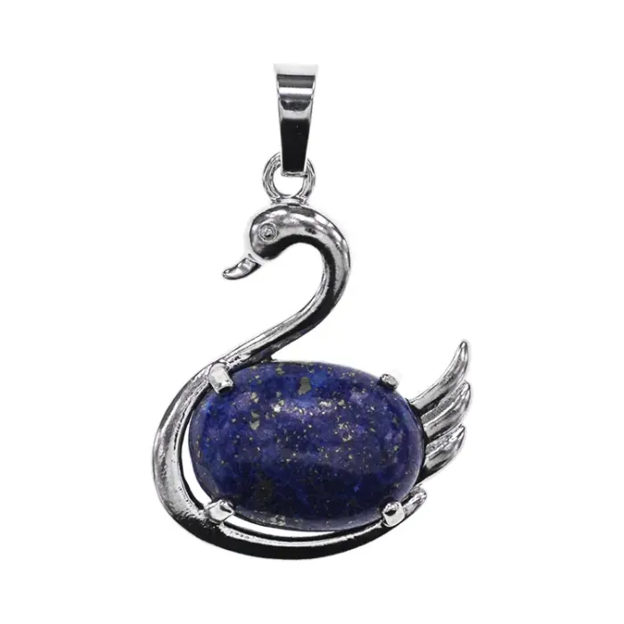 Кулон в виде лебедя из бижутерного сплава с натуральным лазуритом.