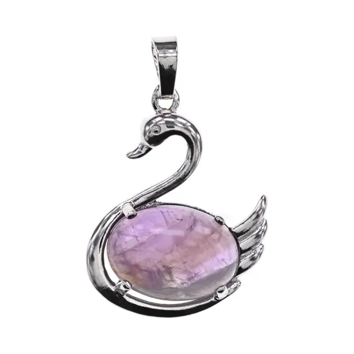 Кулон в форме лебедя из бижутерного сплава с натуральным аметистом.