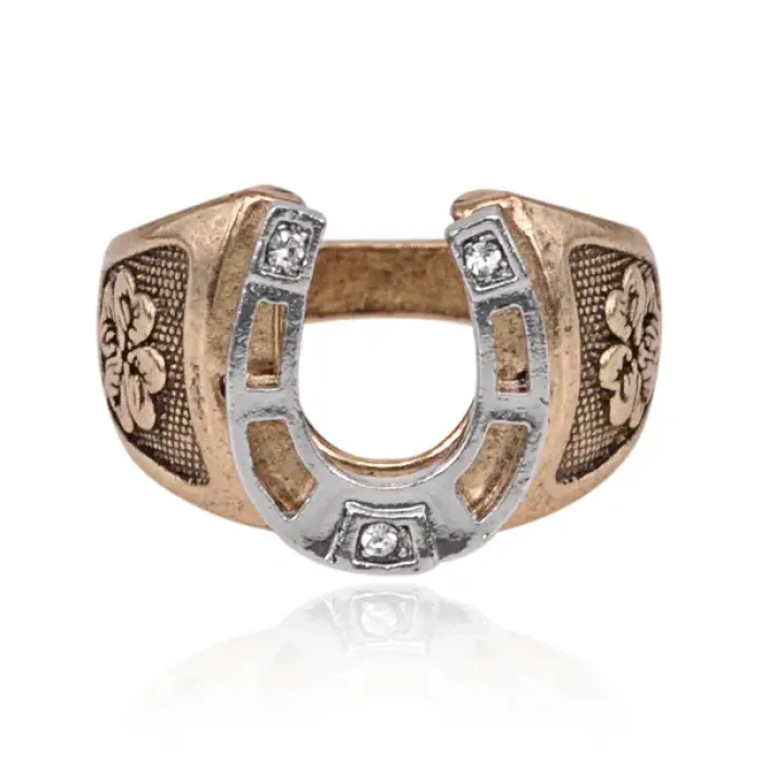 Кольцо «Клевер и подкова» — сувенирное украшение из металла с двухцветным покрытием.