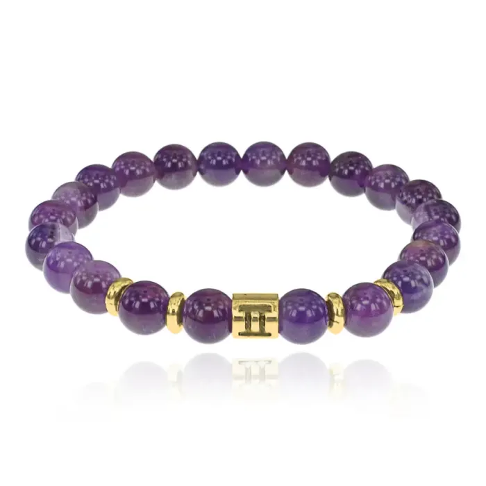 Стрейч-браслет с символом знака зодиака Близнецы, изготовленный из натурального аметиста.