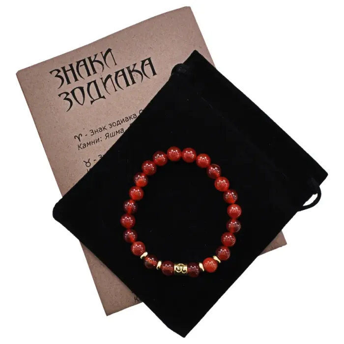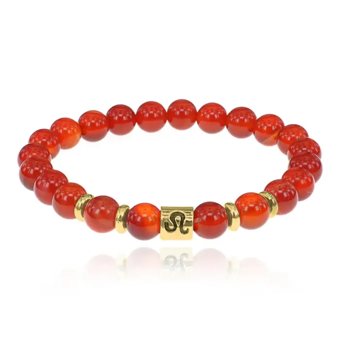 Браслет Знаки Зодиака - Лев с нат.камнем Сердолик 8мм BSZ02-05