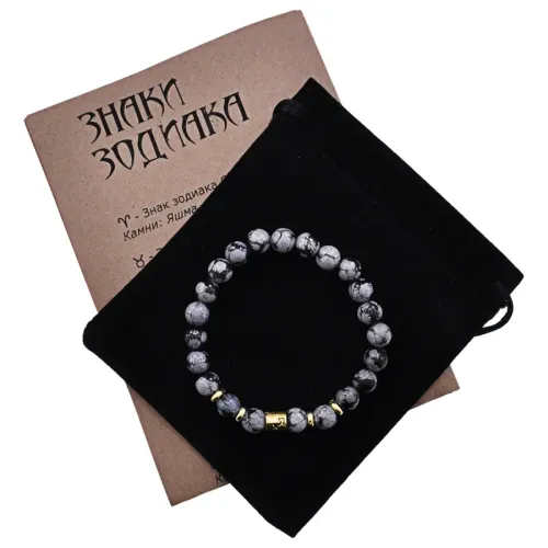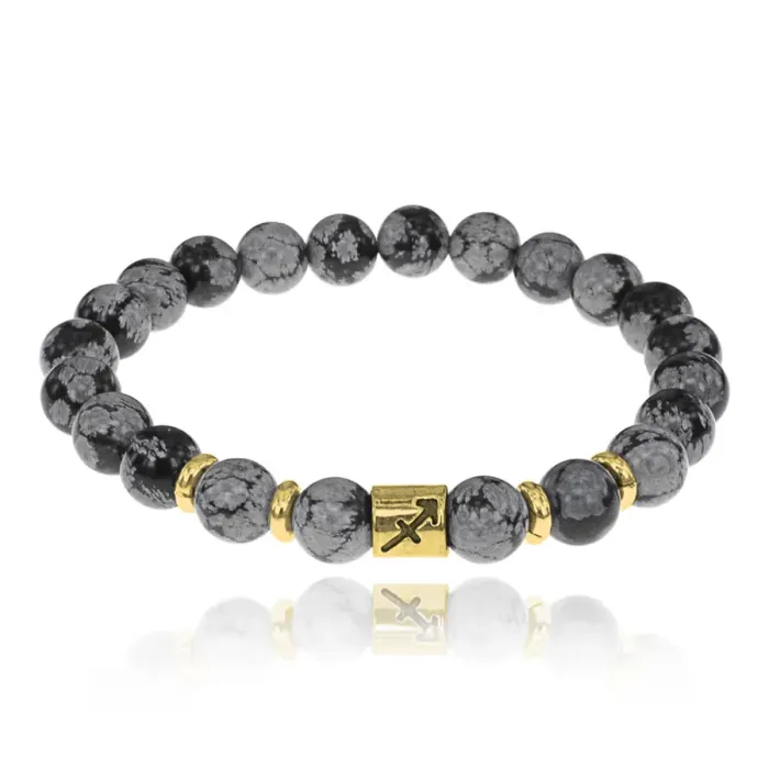 Браслет Знаки Зодиака - Стрелец с нат.камнем Снежный обсидиан 8мм BSZ02-09