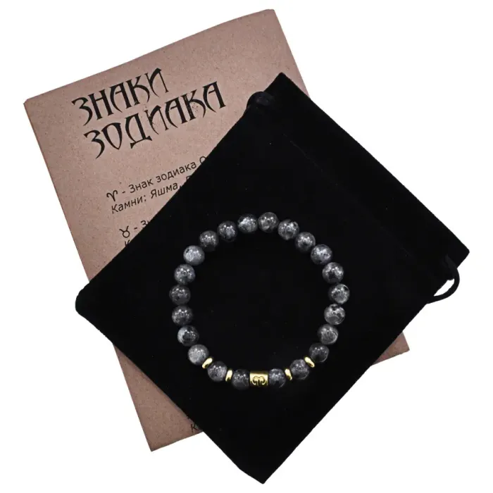 Браслет Знаки Зодиака - Овен с нат.камнем Лабрадор 8мм BSZ02-13
