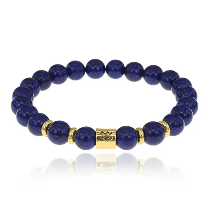 Стрейч-браслет с символом знака зодиака Водолей, изготовленный из натурального камня лазурит.