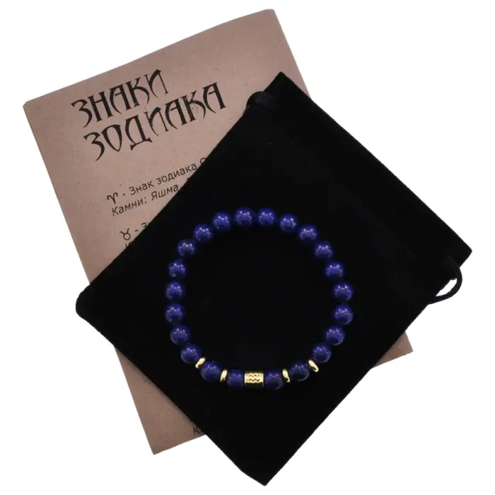 Браслет Знаки Зодиака - Водолей с нат.камнем Лазурит 8мм BSZ02-23