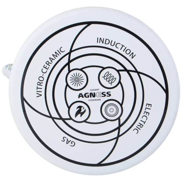 Эмалированный чайник серии Sentiment от Agness предназначен для кипячения воды на плите. Его ключевыми особенностями являются долговечность, обеспечиваемая высококачественной сталью с трёхслойным эмалевым покрытием, и стойкий декор, нанесённый методом ручной деколи.