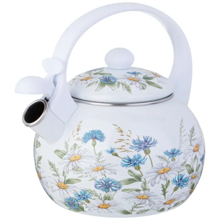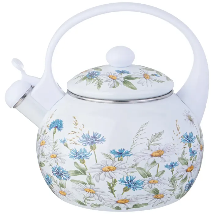 Чайник изготовлен из эмалированной стали, что обеспечивает его гигиеничность и простоту в уходе. Эмаль проходит три этапа обжига при высокой температуре, сохраняя яркость деколи и прочность изделия. Ручное нанесение рисунков добавляет уникальности каждому экземпляру.
