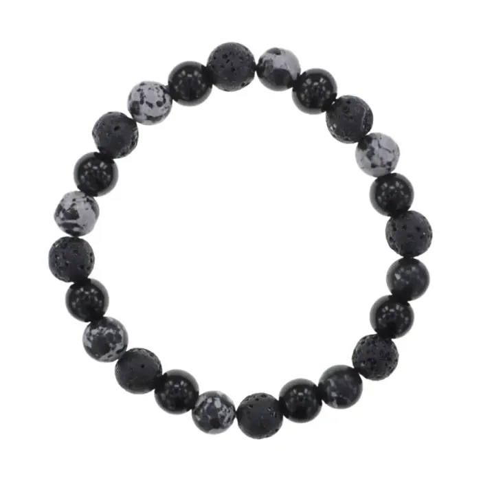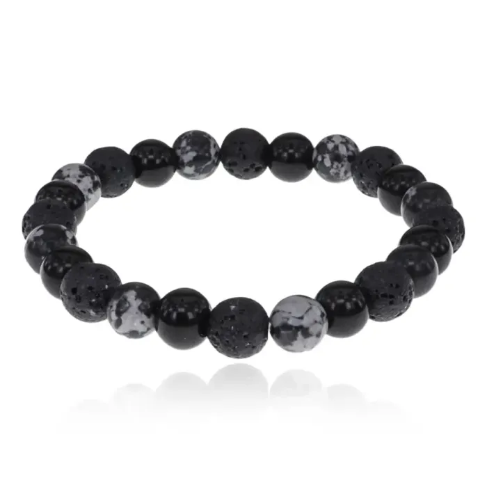 Стрейч-браслет с бусинами из натуральной лавы, пластика и стекла. Диаметр бусин составляет 8 мм.