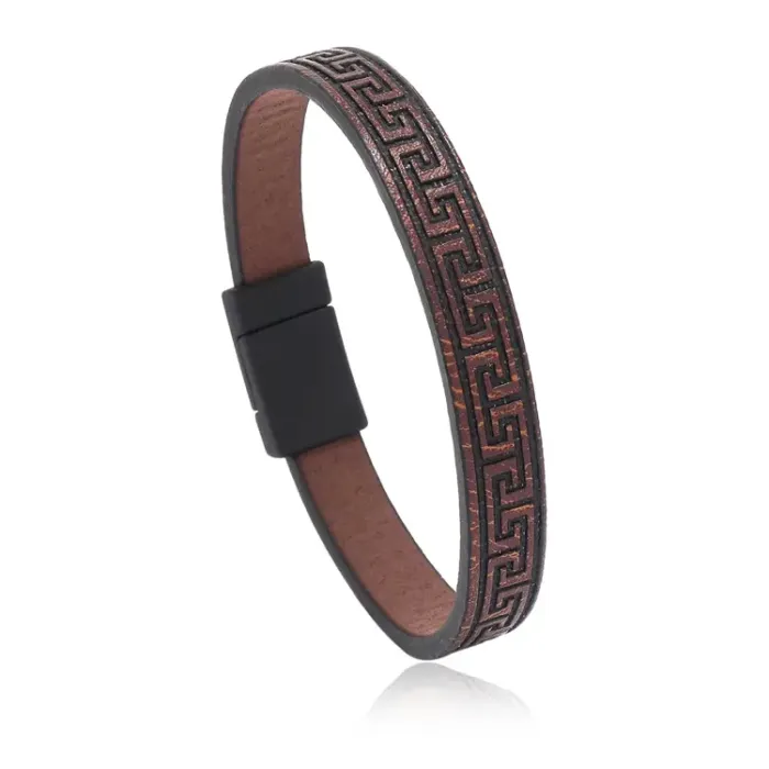 Кожаный браслет тёмно-коричневого цвета с магнитным замком.