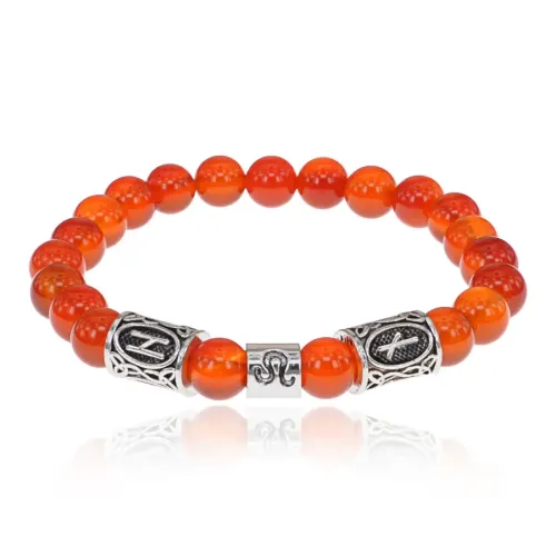 Рунический браслет Лев с нат.камнем Сердолик 8мм BSZ03-05