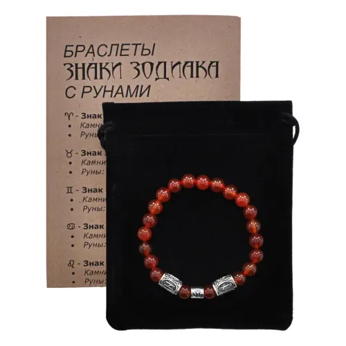 Рунический браслет-амулет со знаком зодиака Лев из натурального сердолика с нанесёнными рунами.