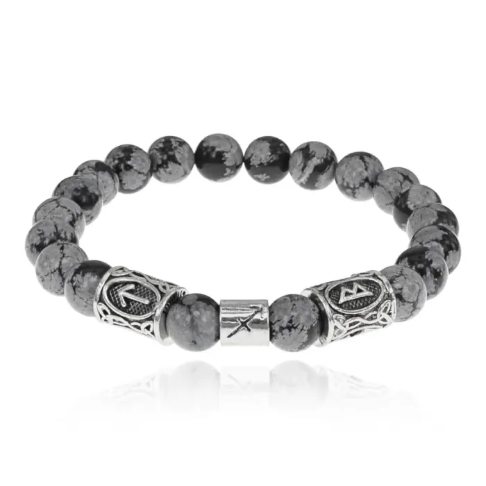 Рунический браслет Стрелец с нат.камнем Снежный обсидиан 8мм BSZ03-09