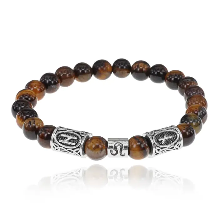 Рунический браслет Лев с нат.камнем Тигровый глаз 8мм BSZ03-17