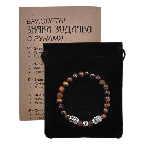 Рунический браслет-сувенир со знаком зодиака Лев, выполненный из натурального камня Тигровый глаз.