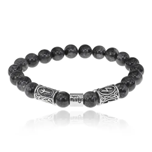 Рунический браслет Скорпион с нат. камнем Лабрадор 8мм BSZ03-20