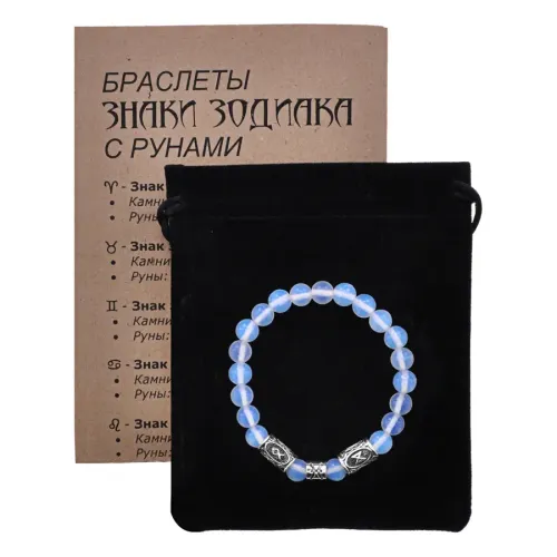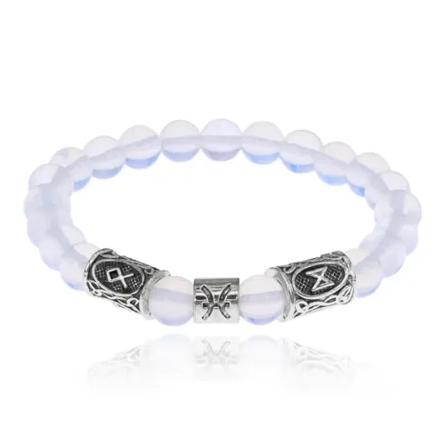 Рунический браслет Рыбы с синт. камнем Лунный камень 8мм BSZ03-24