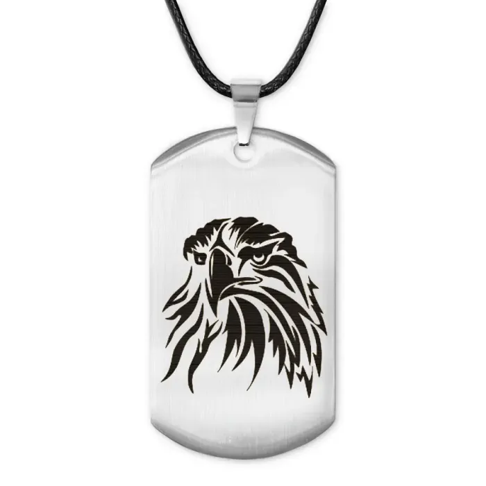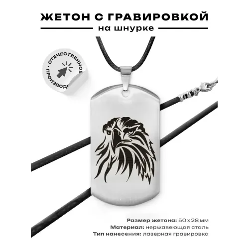 Жетон на шнурке из полированной нержавеющей стали с лазерной гравировкой изображения орла.