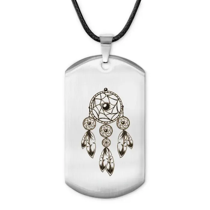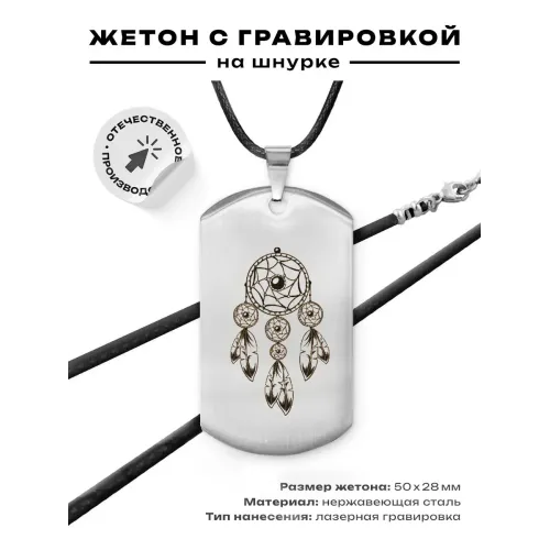 Жетон на шнурке Ловец снов — это стильный амулет, выполненный из высококачественной полированной нержавеющей стали. Этот предмет не только привлекает внимание своим зеркальным блеском, но и символизирует защиту от негативной энергии.