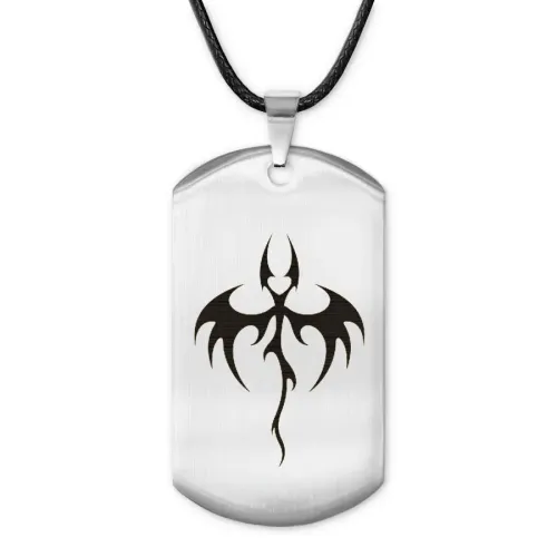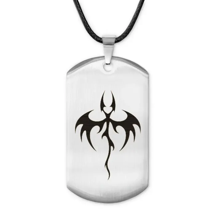 Сувенирный жетон на шнурке с изображением дракона. Изготовлен из полированной нержавеющей стали с лазерной гравировкой.