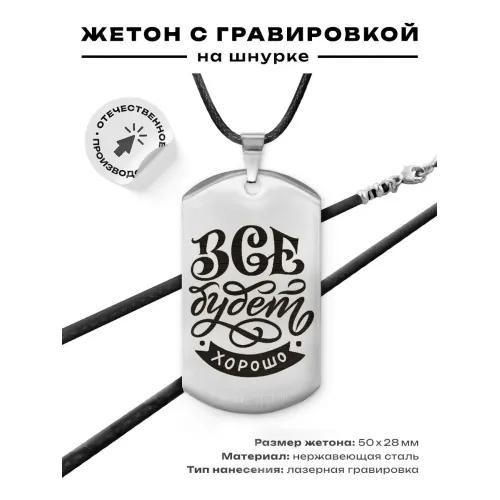 Сувенирный жетон с надписью «Всё будет хорошо» из нержавеющей стали с лазерной гравировкой.