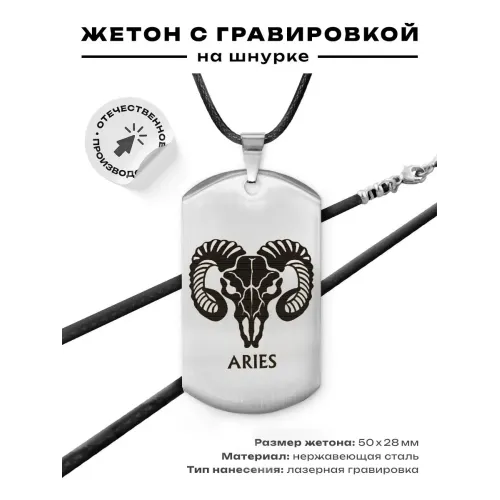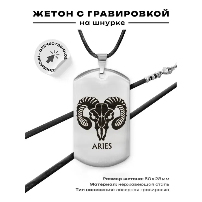 Жетон на шнурке «Знаки Зодиака Овен» — это стильный амулет, который сочетает в себе элегантность и символику. Изготовленный из высококачественной полированной нержавеющей стали, этот жетон обладает зеркальным блеском и долговечностью. Лазерная гравировка с изображением знака зодиака создает уникальный акцент, а вторая сторона остается гладкой и зеркальной.