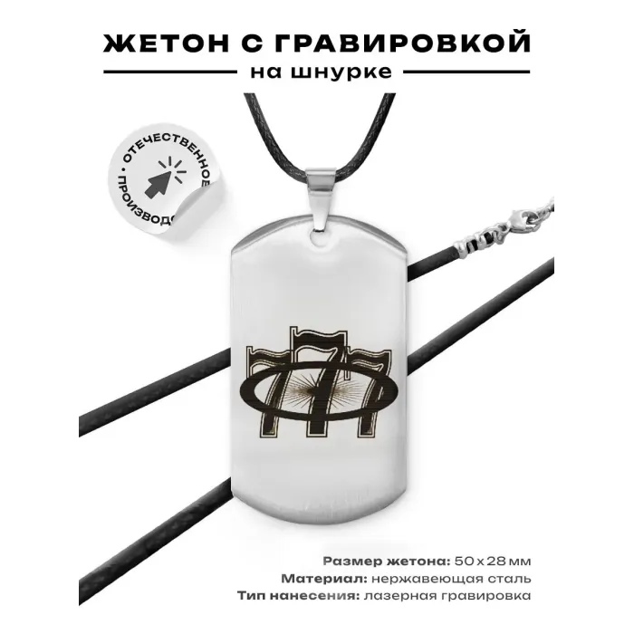 - Размер жетона 50х28 мм — компактный и удобный для ношения.